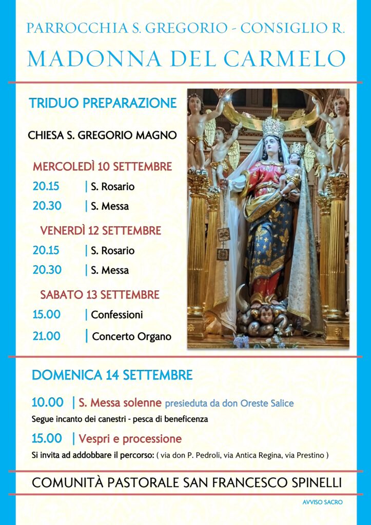 Il mese di settembre, nelle nostre Comunità, è un mese ricco di feste e ricorrenze. Due comunità festeggiano la Beata Vergine Maria, sotto il titolo della Natività di Maria, presso la chiesa del Gorghiglio a Peglio. A Consiglio, per antica tradizione si recupera la festa della Madonna del Carmelo, trasportata dall’estate (quando la popolazione contadini stava ai monti) alla seconda domenica di settembre.