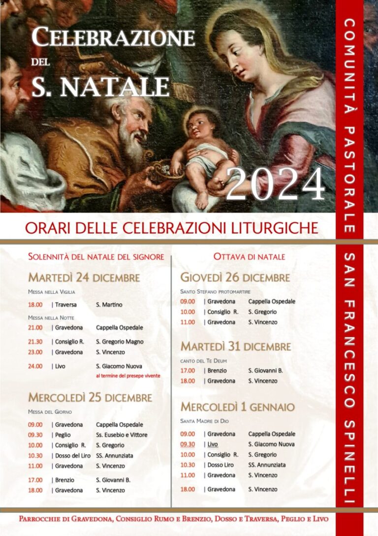 Riportiamo gli orari delle celebrazioni liturgiche del S. Natale nella nostra Comunità Pastorale.Ciascuno può davvero trovare l’opportunità più consona alle proprie necessità.Vi aspettiamo per celebrare…