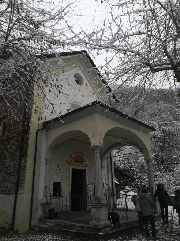La nuova chiesa, edificata prima del 1627, era a una sola navata con la volta decorata e imbiancata e possedeva, separato dalla navata con cancelli di ferro, un altare con tabernacolo ligneo e un bel dipinto con le immagini di santa Maria Maddalena, Gesù e angeli. La parte più interna, destinata alla clausura, era ampia, a volta e circondata da stalli corali in noce. La chiesa fu consacrata il 28 ottobre 1637 durante la seconda visita del vescovo Carafino, con l’espresso invito a ricordare il giorno della consacrazione incidendolo su una lapide. Nel 1652 il presbiterio fu dotato di altare, ancona e statua di marmo ad opera di Carlo e Antonio Fossati di Meride.