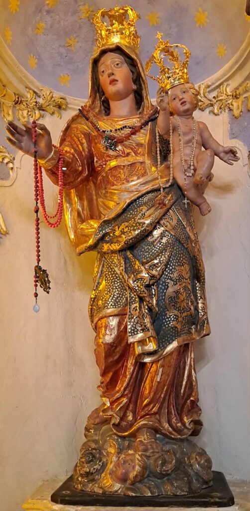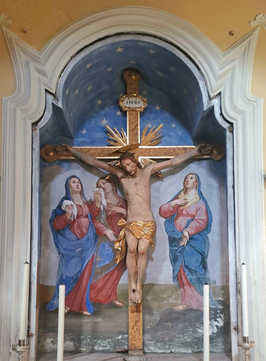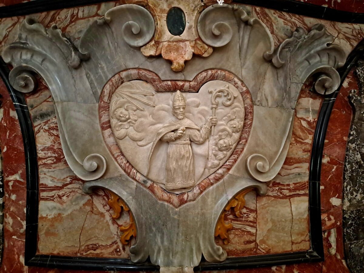L’organo sopra la bussola è opera di Giuseppe Colombi di Gottro e del figlio Domenico che lo realizzarono nel 1782.