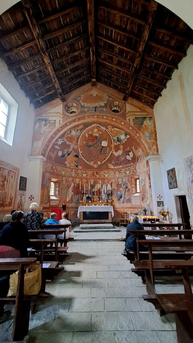 Per il ciclo del Dosso si è richiamato lo stesso artista autore degli affreschi della Crocifissione e della volta del presbiterio di S. Martino a Montemezzo, in cui si nota “lo stesso gusto monumentale, il buon colorismo, il contenuto patetismo e analoghe tipologie di personaggi”. E qualche studioso si è spinto a fare, per l’ignoto artista, il nome del ticinese Giovanni Antonio De Lagaia, che firma, nel 1519, la tavola con la Madonna della Misericordia in S. Maria della Misericordia ad Ascona. Altri affreschi molto ammalorati ascrivibili, tranne il San Rocco della terza campata di sinistra, alla seconda metà del Cinquecento sono presenti sulle pareti della navata.
