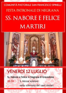 Il 12 luglio si celebra la festa dei Ss. Nabore e Felice, patroni a Negrana.