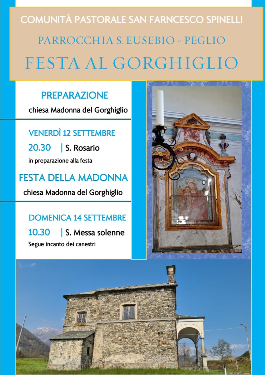 Il mese di settembre, nelle nostre Comunità, è un mese ricco di feste e ricorrenze. Due comunità festeggiano la Beata Vergine Maria, sotto il titolo della Natività di Maria, presso la chiesa del Gorghiglio a Peglio. A Consiglio, per antica tradizione si recupera la festa della Madonna del Carmelo, trasportata dall’estate (quando la popolazione contadini stava ai monti) alla seconda domenica di settembre.
