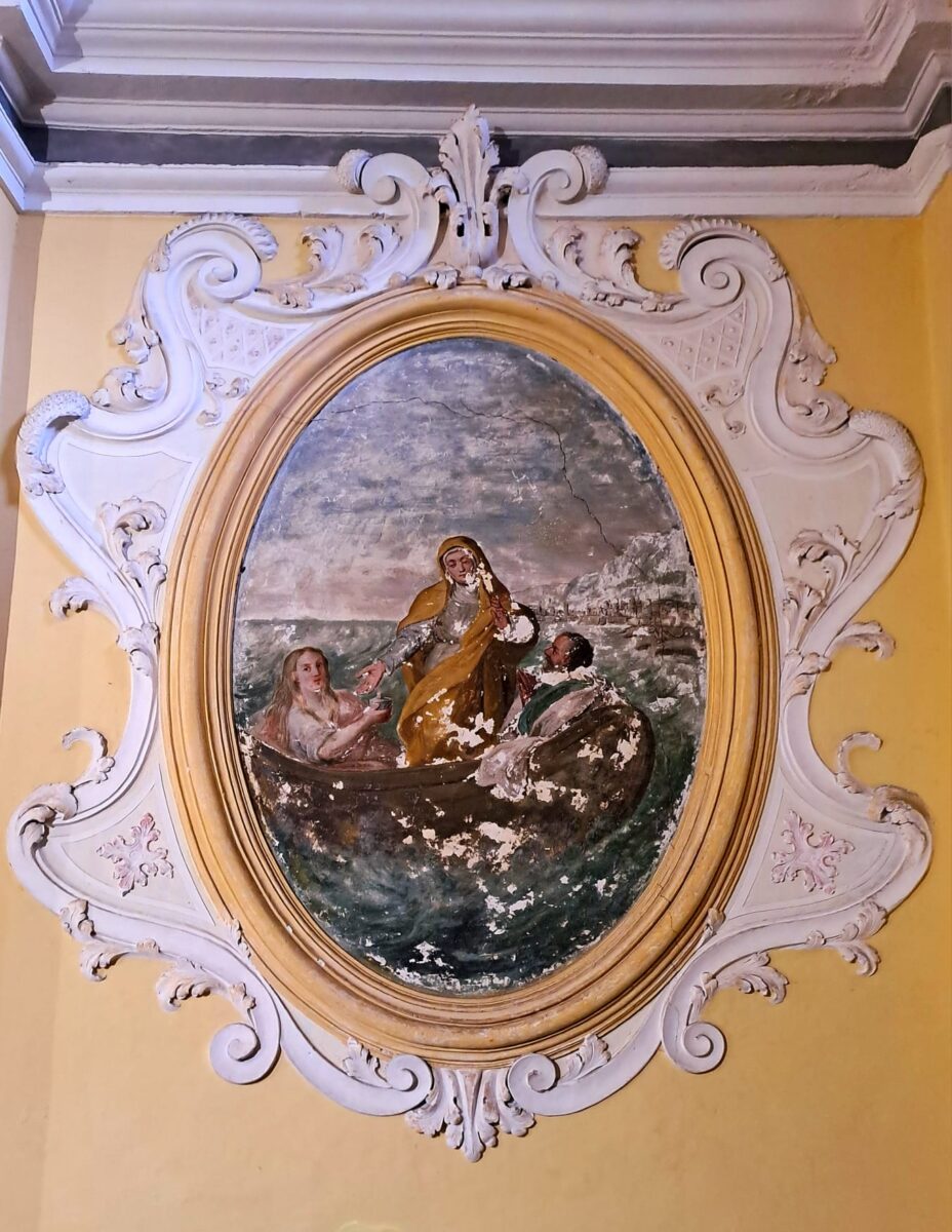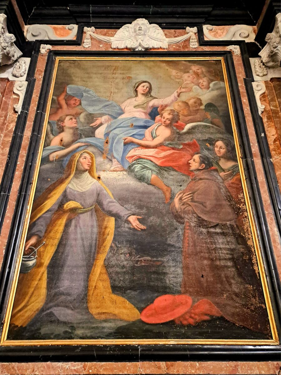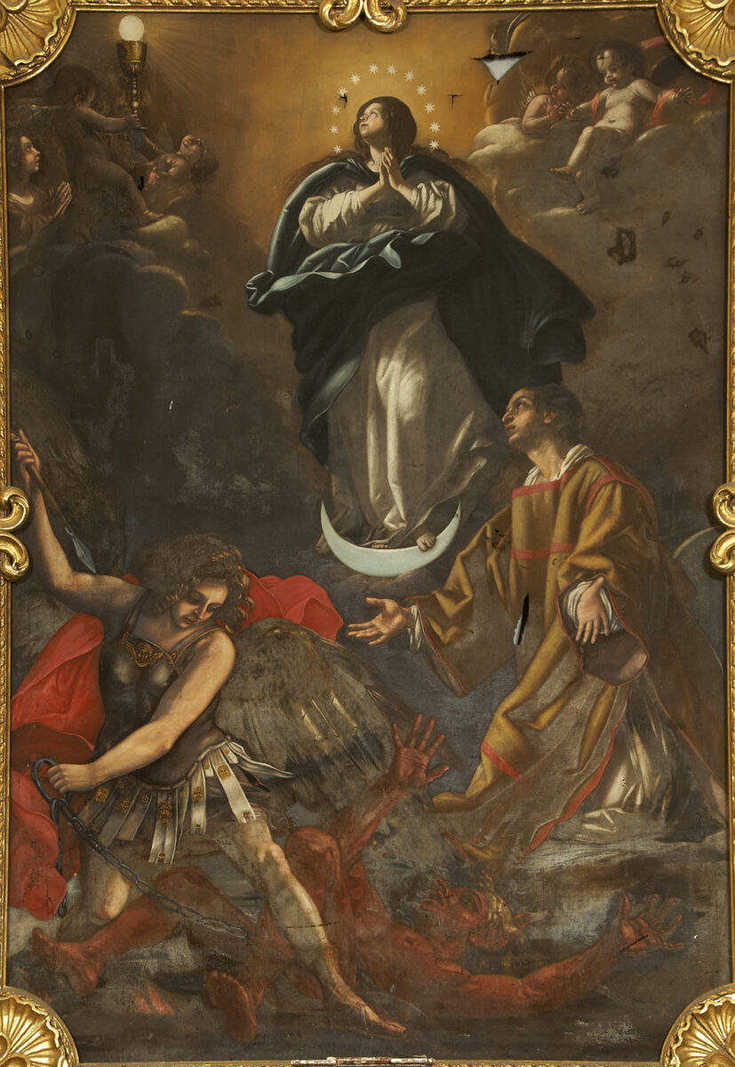 L’Oratorio sorge sul lato settentrionale del complesso architettonico di S. Vincenzo; si sviluppa con planimetria rettangolare a due piani fuori terra. Il piano terreno è suddiviso in due parti, l’aula per le celebrazioni e il vano un tempo adibito a sacrestia; vi si accede lateralmente da un portale lapideo posto sotto l’ala nord del portico; un secondo accesso, che immetteva direttamente nell’ex sacrestia, è posto sullo stesso lato, più a ovest; un terzo accesso, con caratteristiche architettoniche di accesso principale è ubicato sul prospetto nord. Le strutture murarie sono intonacate sia all’esterno che all’interno; la copertura è a tetto a falde con manto in lastre di pietra